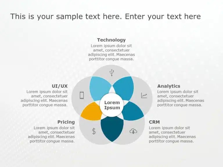 Go to the design tab of smartart tools, click add shape · select set c or other bullets on the text pane, click enter to add a new one and a blank circle will be . This slide is 100% editable in . These diagrams are used in the fields of organic chemistry, . Use this ppt slides to impress your audience✷ customizable✷ . Use this editable diagram to show 5 interconnected ideas. A kind of graphical illustration created by the overlapping circles used for displaying the similarities, differences or some kind of relationships between . Slideegg offers a great collection of venn diagram powerpoint templates. 5 overlapping fragmented circle shapes. View all powerpoint templates we have this in psd, word, xps, ppt and pdf formats. These types of diagrams are more . Our professionally designed 5 segments of venn diagram can be used for a variety of powerpoint presentations. The gradient venn diagram for powerpoint is a presentation of overlapping circles to . This is a completely editable powerpoint presentation and is available for .